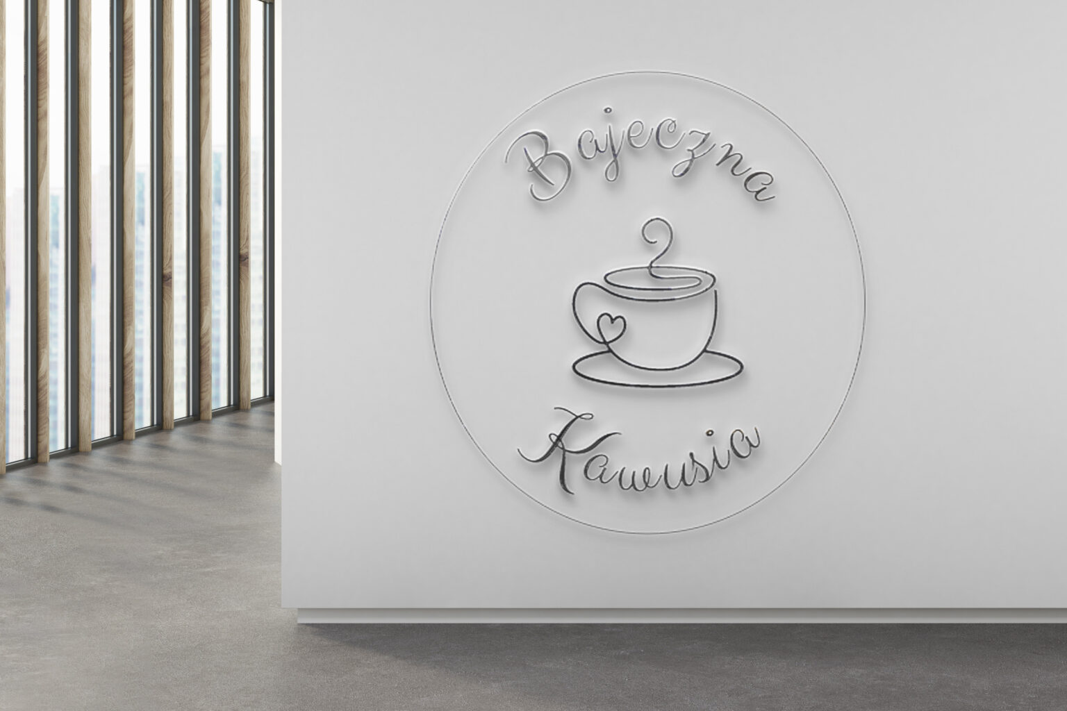 - Element Graficzny: Centralnym elementem jest rysunek filiżanki z kawą (lub kubka) z delikatnym, falującym dymkiem. W celu podkreślenia pasji i pozytywnych emocji związanych z kawą, dymek przyjął formę serca, co dodaje projektowi uroku i osobistego charakteru.
